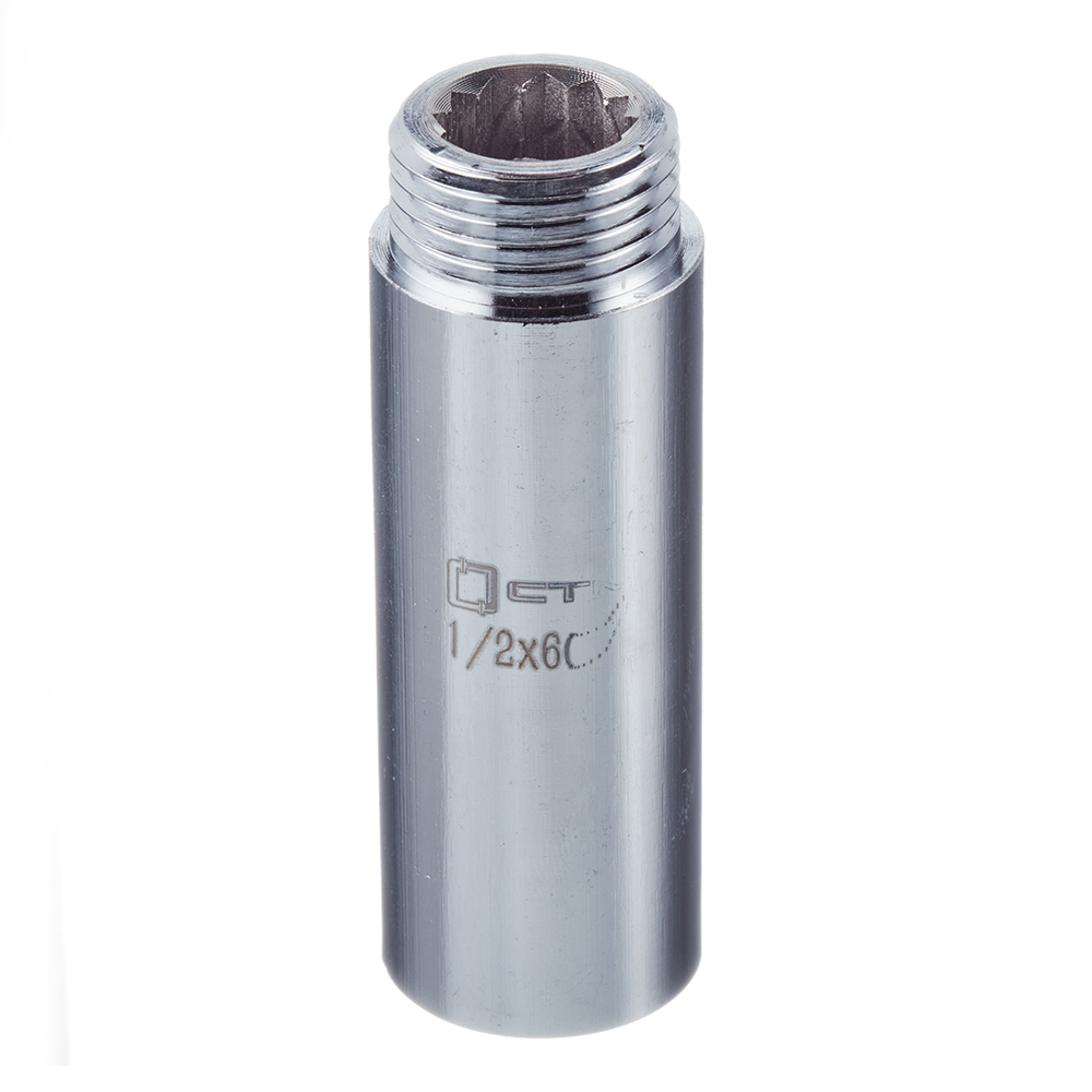 Предназначен для удлинения резьбового соединения на 60 мм. С одной стороны имеет внутреннюю резьбу 1/2(16 мм), с другой стороны наружную 1/2(16 мм).
