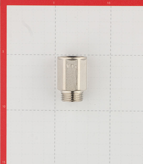 Предназначен для удлинения резьбового соединения на 30 мм. С одной стороны имеет внутреннюю резьбу 1/2(16 мм), с другой стороны наружную 1/2(16 мм). Резьба – внутренняя/наружная, цилиндрическая трубная по ГОСТу 6357 (ISO 228, EN 10226), совместимая также с наружной конической трубной резьбой по ГОСТу 6211 (ISO R7)