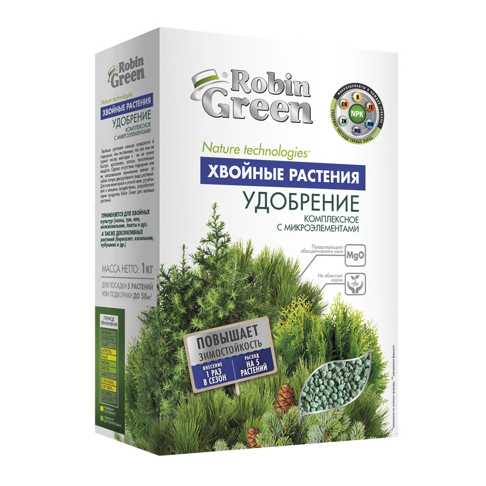 Удобрение сухое для хвойных растений минеральное гранулированное Робин Грин 1 кг