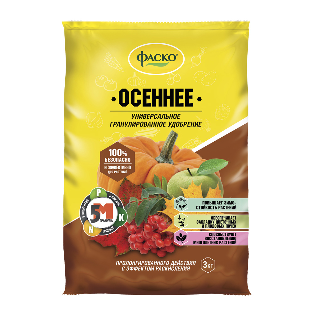 Удобрение сухое универсальное минеральное гранулированное 5М Осень Фаско 3 кг