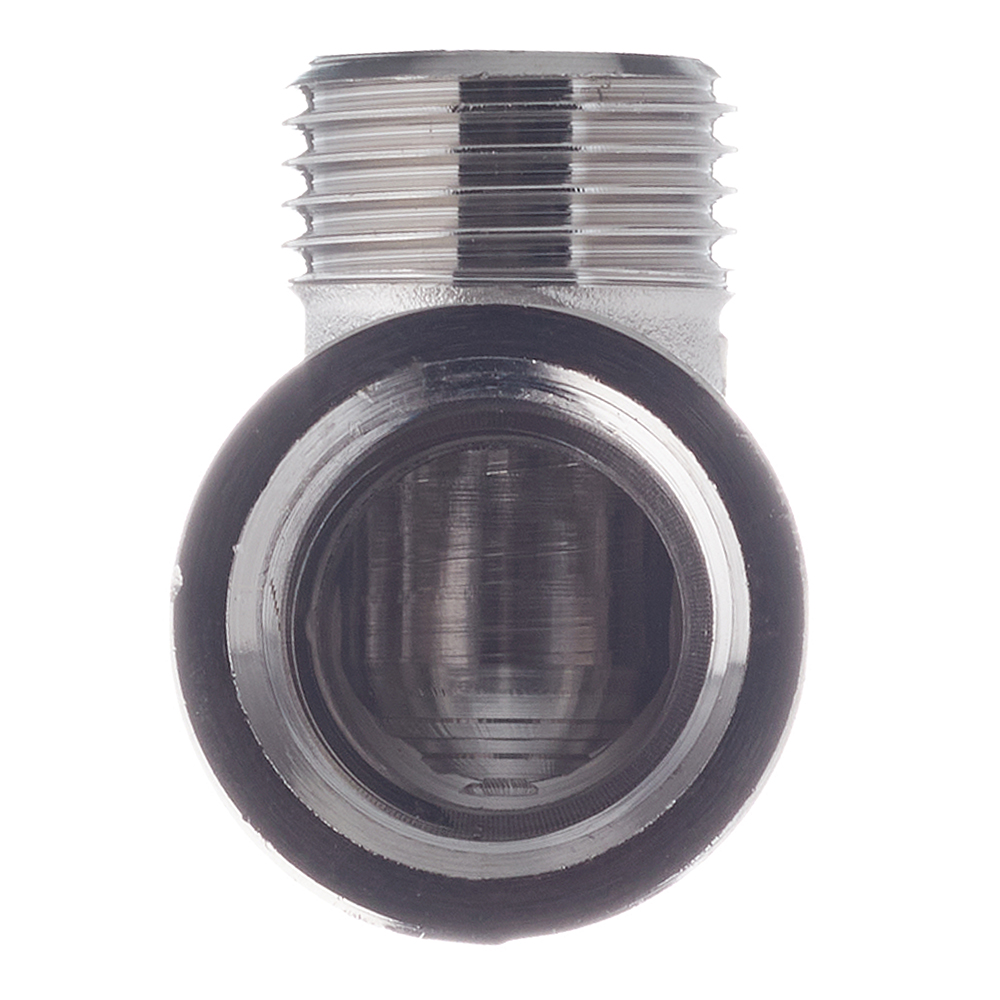 Предназначен для изменения направления металлопластиковых или полипропиленовых труб с наружной резьбой 1/2(16 мм) на 90º с переходом на резьбовое соединение диаметром 1/2(16 мм) с внутренней резьбой.