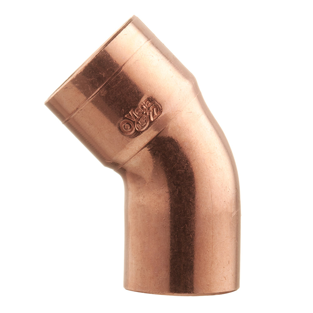 Угол однораструбный Viega под наружную/внутреннюю пайку 22 мм 45° медный