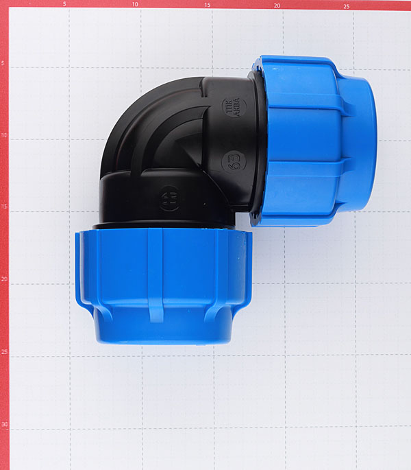 Предназначен для создания поворота на 90° системы водоснабжения из труб ПНД диаметром 63 мм.