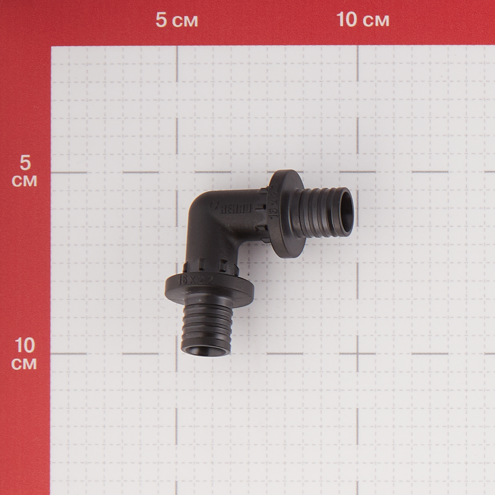 Предназначен для изменения направления трубы Rehau диаметром 16 мм на 90°.rnМонтируется с помощью набора специальных инструментов RAUTOOL (насадки с зеленым кольцом для Rehau Stabil, насадки с синим кольцом для Rehau Flex).
