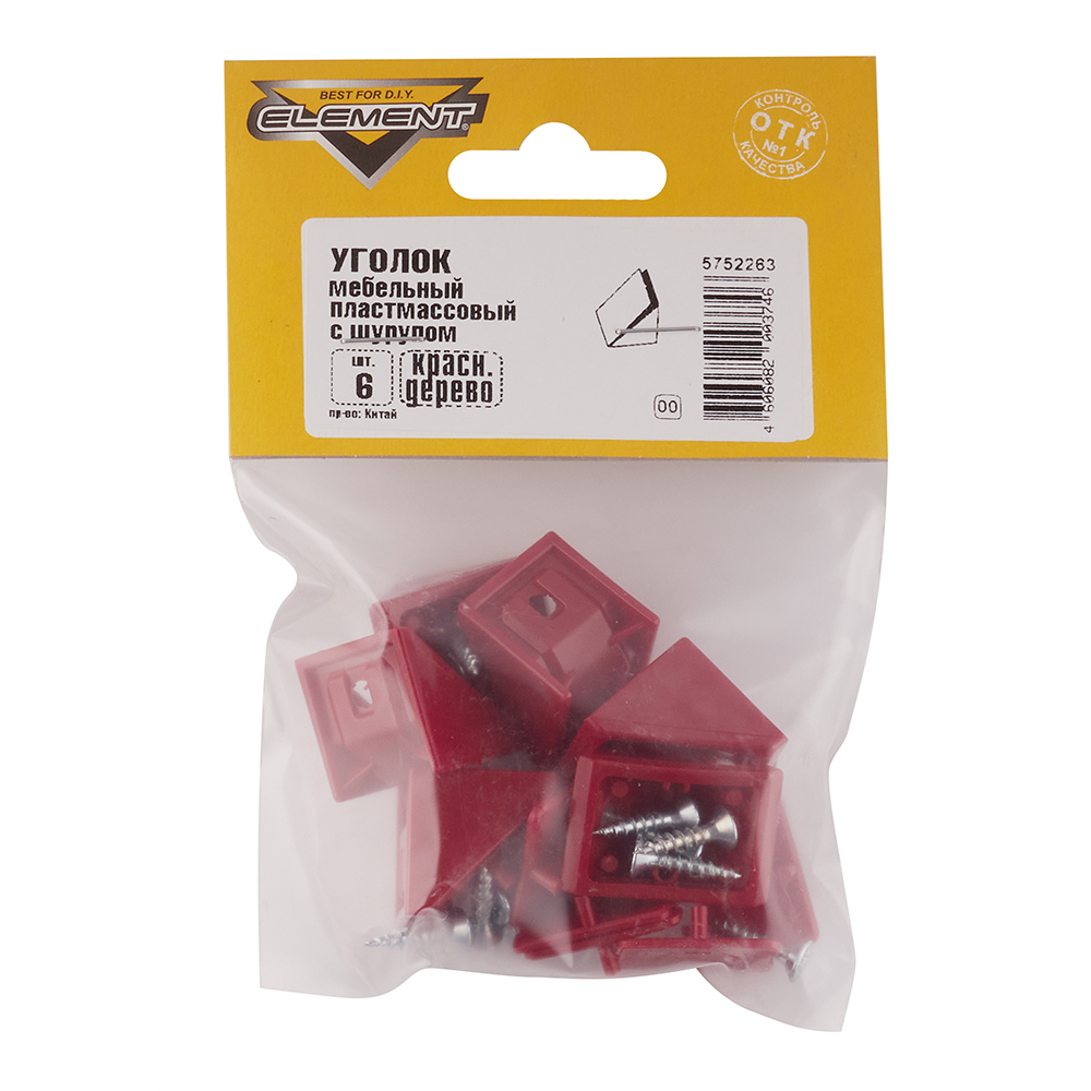 Уголок мебельный пластиковый 21х21х21 мм красное дерево с шурупом (6 шт.)