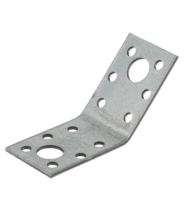 Предназначен для крепления соединительных элементов в стропильных системах под углом 135°. rnИзготовлен из оцинкованной стали. Имеет отверстия диаметром 5 мм под саморезы или гвозди и 13 мм под болты или штанги с резьбой.