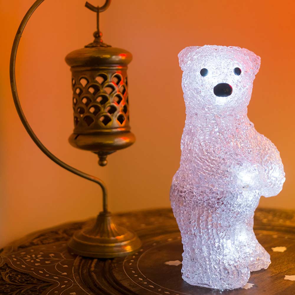 Предназначен для использования внутри помещений. Акриловые фигуры за несколько лет вызвали большой интерес у дизайнеров и частных клиентов. С каждым годом расширяется не только ассортимент акриловых фигур, но и появляются новые технологии нанесения акрила. Эти яркие, светящиеся объемные фигуры, состоящие из металлического каркаса, акрила и светодиодов, применяются для оформления и создания новогодней атмосферы в кафе, ресторанах, торговых центрах, магазинах, а также просто в частных домах и квартирах. rnАкриловая светодиодная фигура Медвежоноквысотой 22 см, светящаяся более чем 10 ярких диодов, на батарейках, выполненная по специальной технологии нанесения акрила имитируя шерстяной покров реального животного. Она позволит Вам создать ту самую, настоящую новогоднюю атмосферу и принести сотни радостных улыбок. rnПитание от 3-х батареек типа AAA, батарейки не в комплекте
