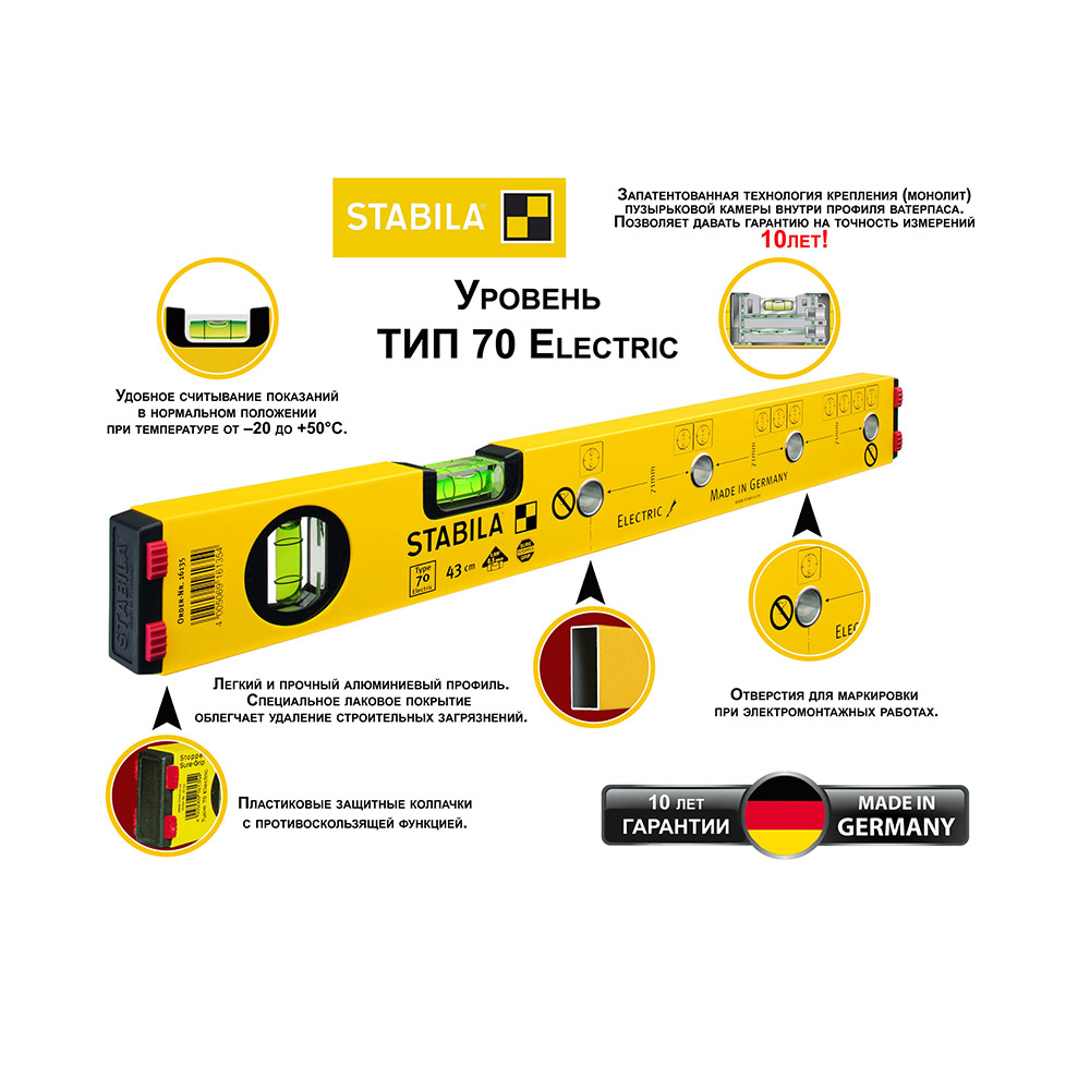 Уровень для электрика STABILA 70 ELECTRIC 43 см 2 глазка