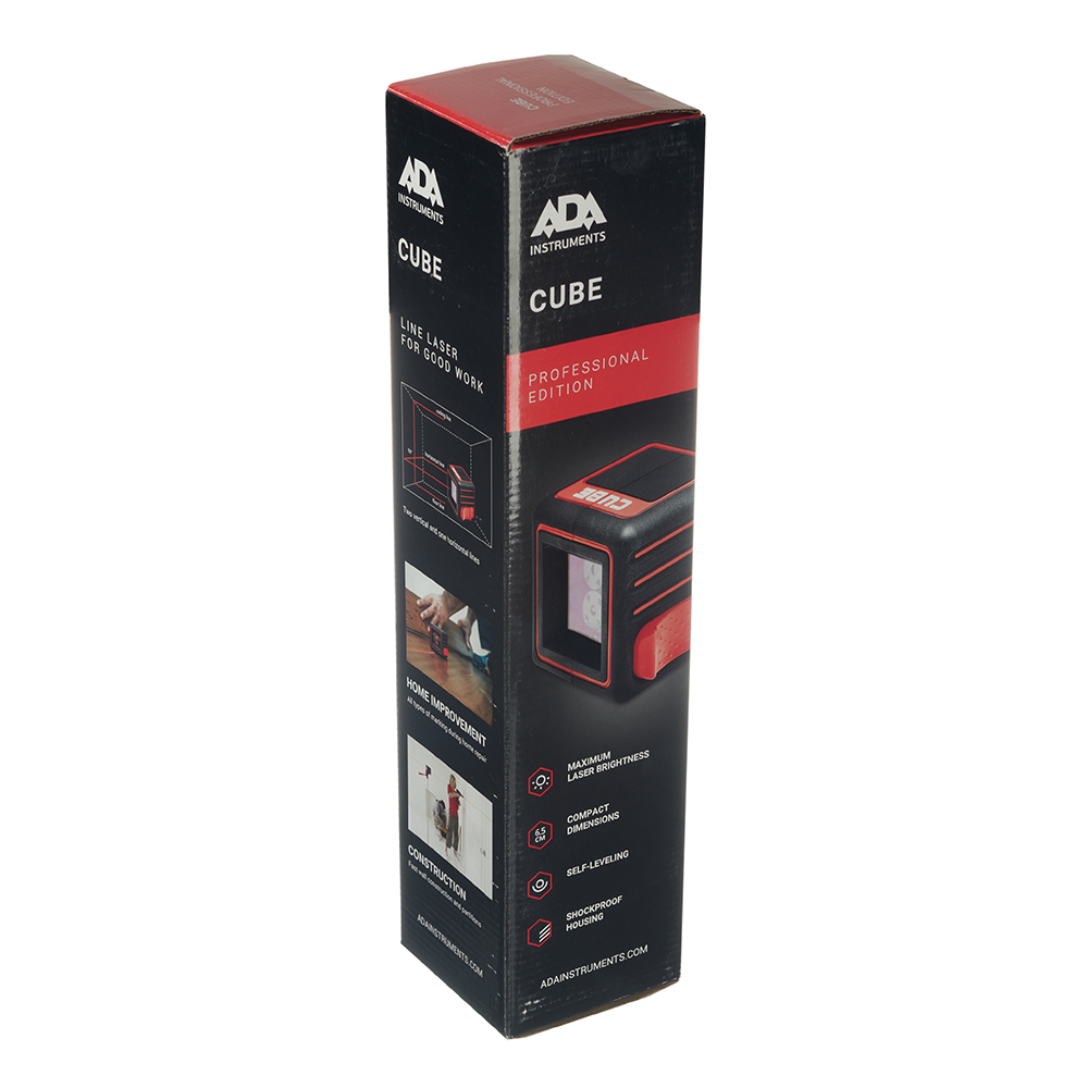Компактный профессиональный лазерный уровень. Минимальные размеры. Удобный корпус в форме куба. Размер грани всего 6.5 см. Конструкция лазерного уровня ADA CUBE создавалась с расчетом на агрессивные условия эксплуатации. Сопротивляемость нагрузкам максимально высокая. Удары, падения, попадание брызг, пыль — материалы, из которых изготовлен лазерный уровень, выбирались специально для надежной работы в тяжелых условиях строительной площадки. Резиновые накладки со всех сторон предохраняют прибор от повреждений. Ребристая поверхность не даст уровню выскользнуть из рук при перестановке. Резьба 1/4 дюйма в основании прибора позволяет устанавливать уровень на фото-штатив или универсальное крепление.