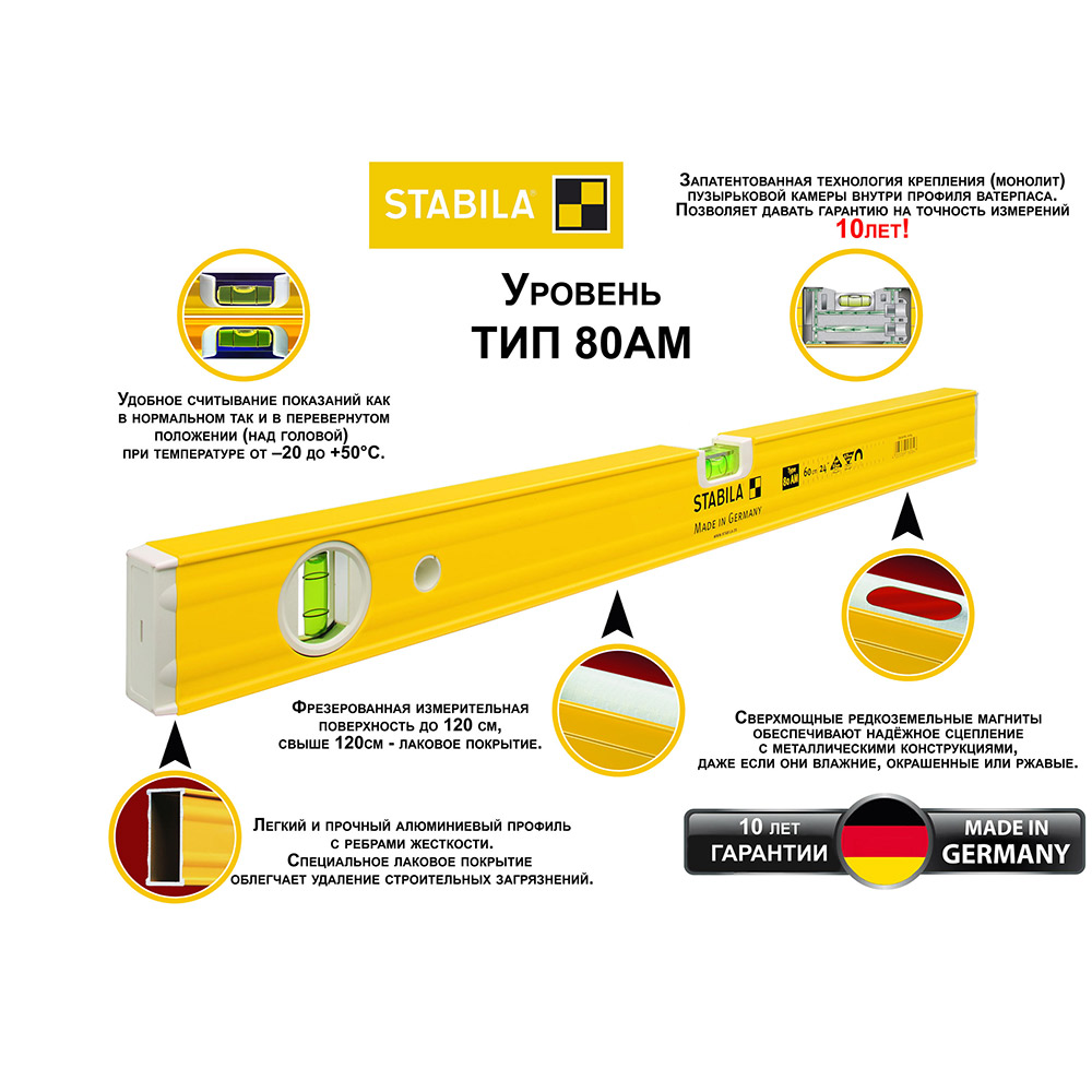 Уровень магнитный STABILA 80ASM 60 см 2 глазка усиленный