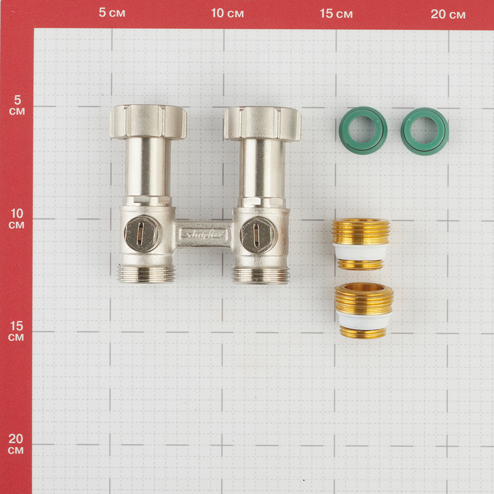 Предназначен для нижнего подключения радиаторов. Возможность компенсации высоты до 25 мм. Двухтрубное нижнее подключение EXCLUSIV. Для патрубков с обжимными соединениями. С соединительными ниппелями Rp 1/2 и коническими элементами G 3/4 Евроконус.