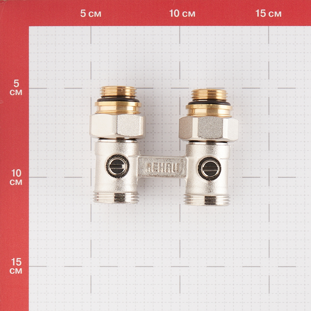 Узел нижнего подключения Rehau (12407271001) прямой 1/2 НР(ш) х 3/4 ЕК НР(ш) для радиатора с шаровыми кранами и накидными гайками
