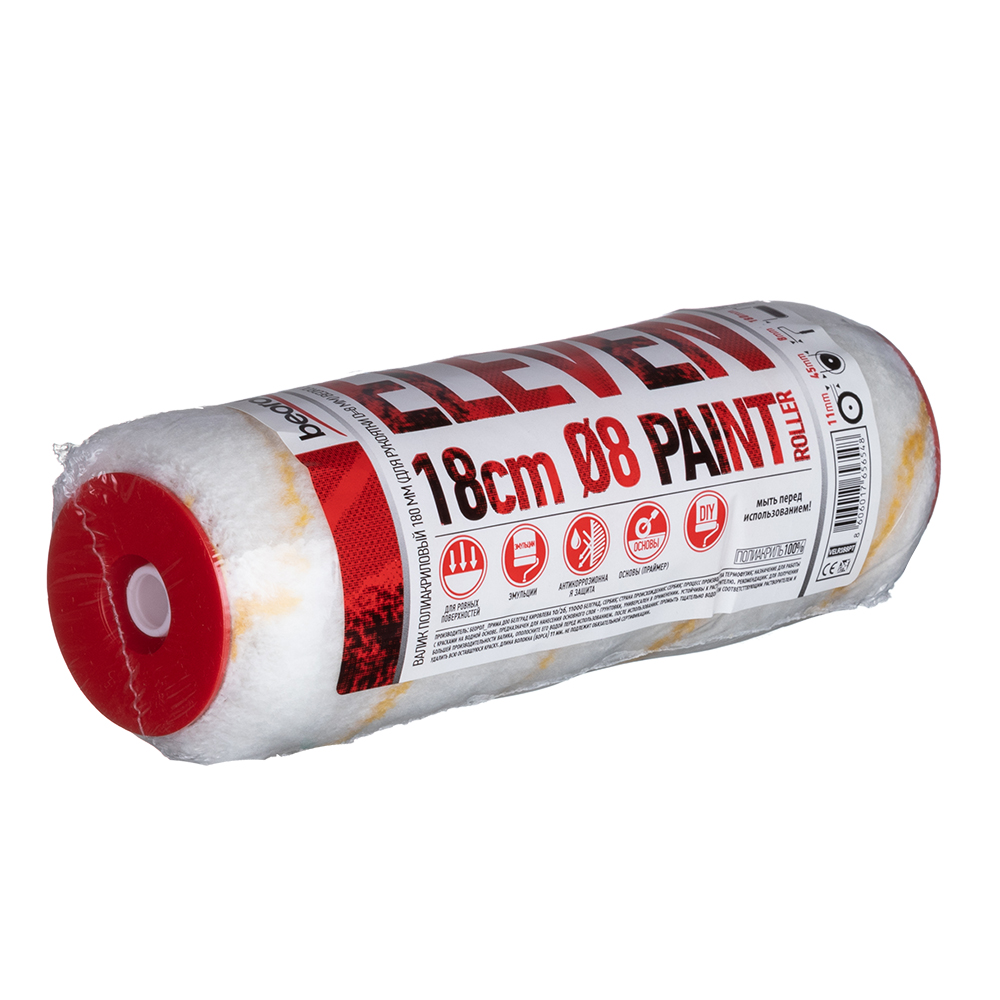 Предназначен для нанесения вододисперсионных красок на любые поверхности. rnУстойчив к растворителям. Используется в качестве сменного элемента для рукоятки шириной 180 мм, диаметром стального стержня 8 мм.