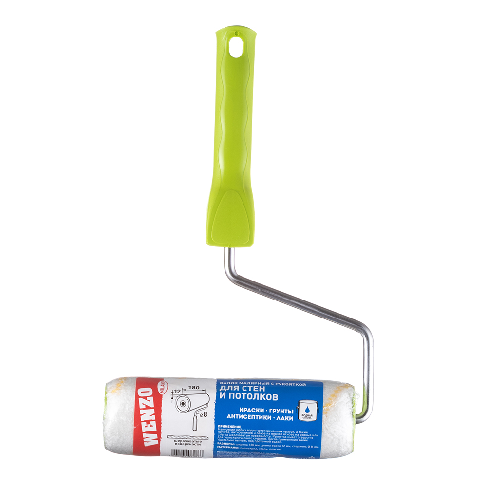 Валик Wenzo Milano полиакрил 180 мм ворс 11/12 мм для красок лаков грунтов и антисептиков на водной основе с рукояткой