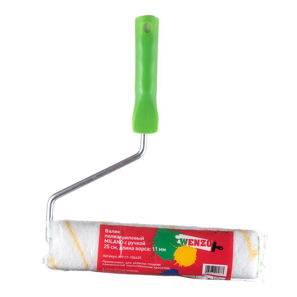 Валик Wenzo Milano полиакрил 250 мм ворс 11/12 мм для красок лаков грунтов и антисептиков на водной основе с рукояткой