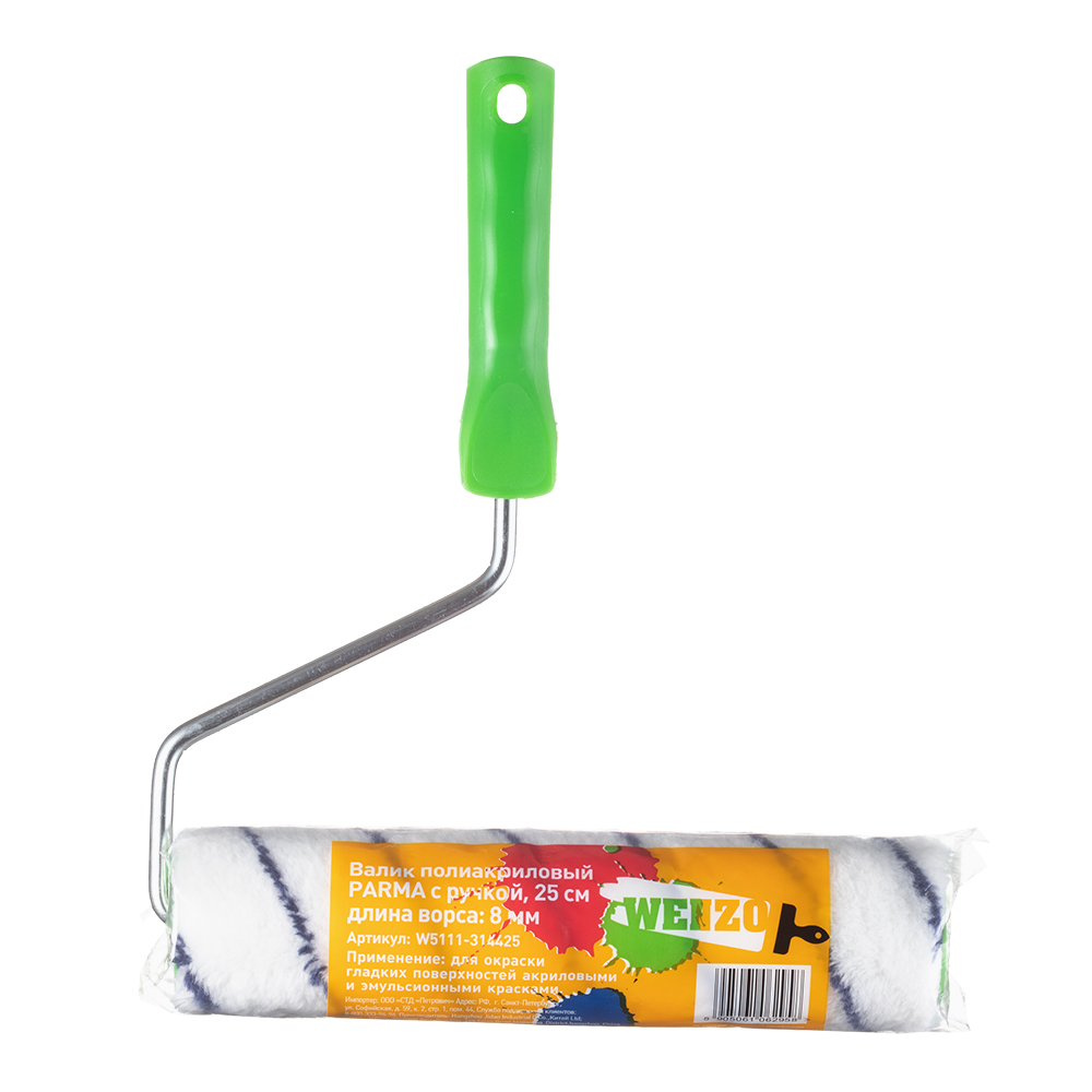 Валик Wenzo Parma полиакрил 250 мм ворс 8 мм для красок эмалей и лаков на водной основе с рукояткой