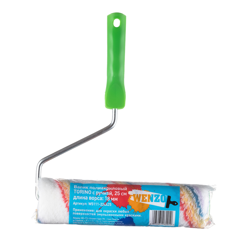 Валик Wenzo Torino полиакрил 250 мм ворс 18 мм для красок грунтов и антисептиков на водной основе с рукояткой