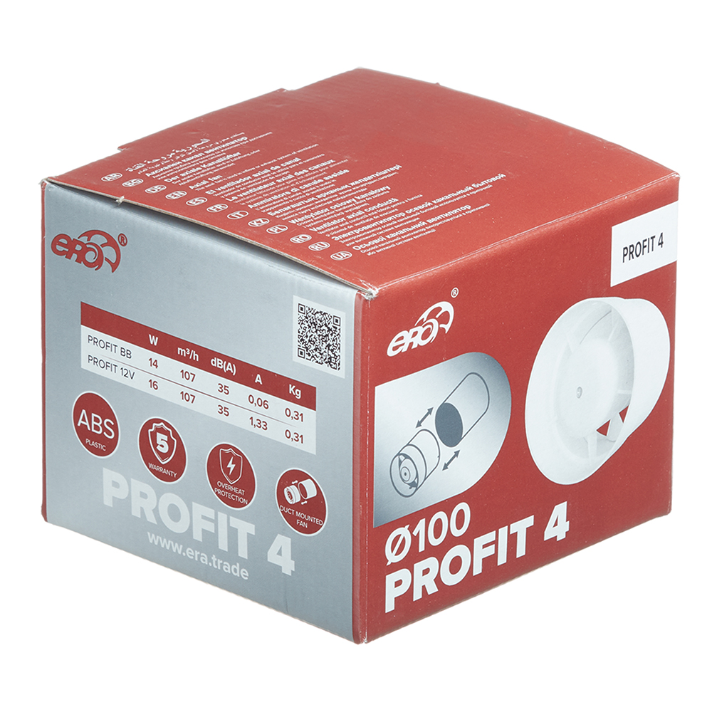 Вентилятор канальный ERA PROFIT d100 мм белый