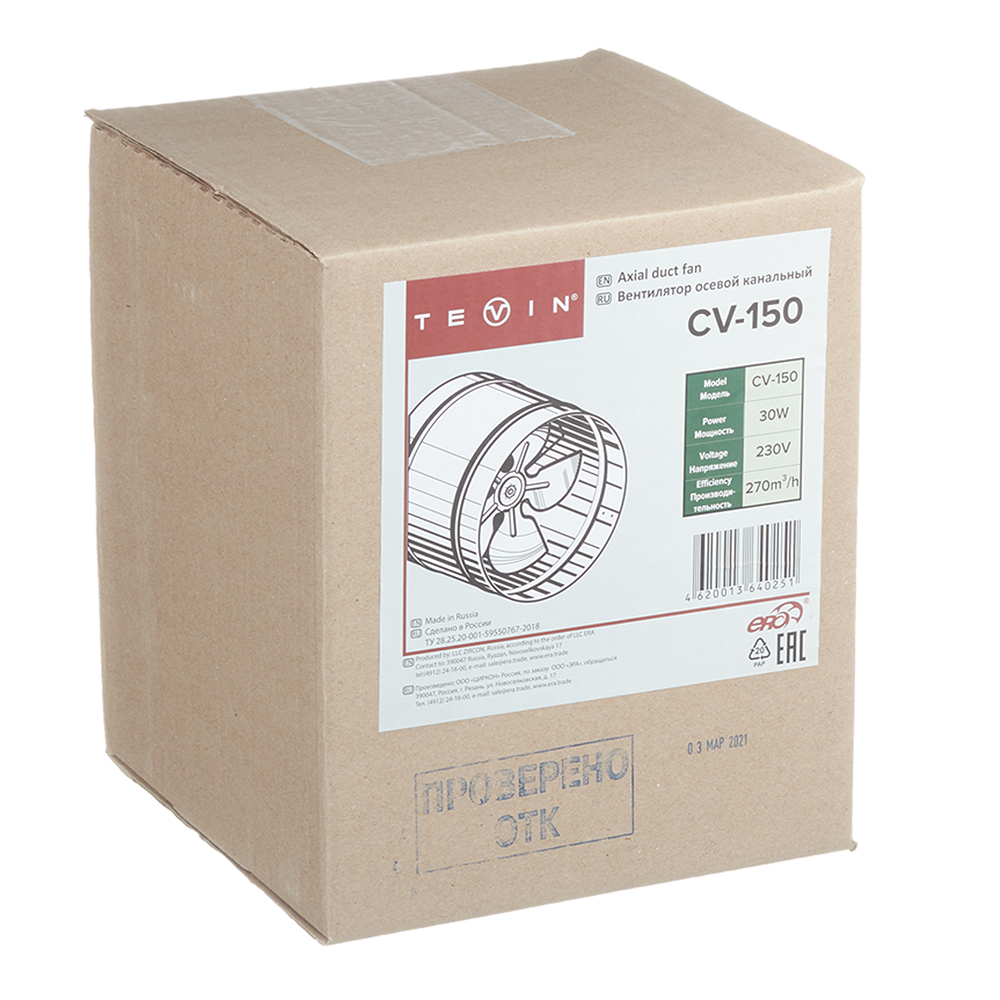 Вентилятор канальный осевой ERA CV-150 d150 мм