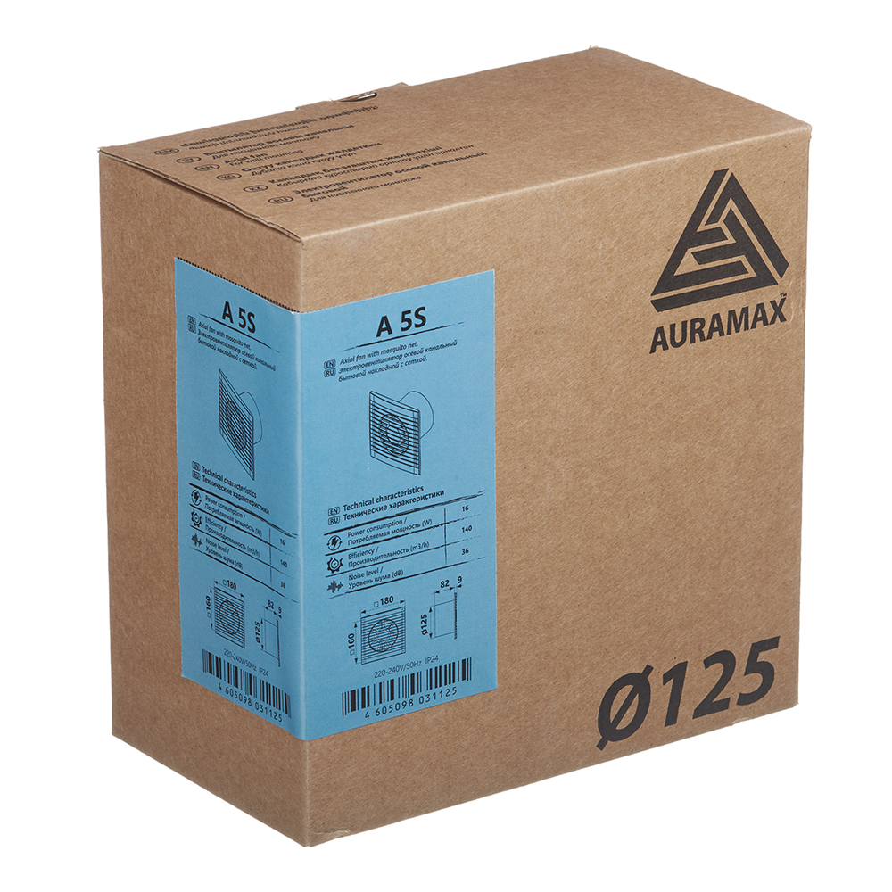Вентилятор осевой AURAMAX А антимоскитная сетка 180х180 мм d125 мм белый