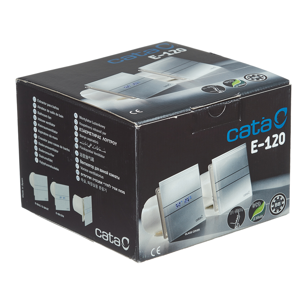 Вентиляторы Cata – производство Испания. Вентиляторы для ванной комнаты Cata E-серии вобрали все самое лучшее от своих предшественников. Стеклянная панель вентилятора – новомодный изыск, водружающий данный вентилятор на вершину сегмента элитной вентиляции. Предназначен для постоянной или периодической вытяжной вентиляции санузлов, ванных комнат, кухонь и других бытовых помещений. Имеет двигатель с защитой от перегрева. Устанавливается в вентиляционную шахту или в воздуховод соответствующего диаметра. Вентилятор используется только для настенного монтажа. Подключение к сети осуществляется через отдельный выключатель или через штатный выключатель освещения в помещении.