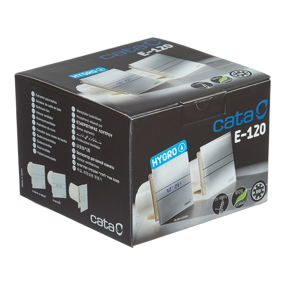 Вентиляторы Cata – производство Испания. Вентиляторы для ванной комнаты Cata E-серии вобрали все самое лучшее от своих предшественников. Стеклянная панель вентилятора – новомодный изыск, водружающий данный вентилятор на вершину сегмента элитной вентиляции. Данный вентилятор оборудован электронным табло, которое отображает температуру и влажность в помещении. Двигатель имеет защиту от перегрева. Также, вентилятор оборудован таймером задержки отключения от 3 до 30 мин и датчиком влажности. Для подключения и корректного пользования функциями вытяжного вентилятора с таймером необходимо подвести к месту установки и подключить к клеммам вентилятора три провода (сетевая фаза – к контакту L , 0 – к контакту N и управляющая фаза, которая приходит от выключателя света в помещении при его замыкании – к контакту SL. При таком способе подключения вентилятор будет включаться вместе с включением освещения в помещении (появляется фаза на управляющем контакте SL вентилятора), а при выключении освещения (пропадает фаза на управляющем контакте SL вентилятора) будет продолжать работать время, установленное на плате таймера. Устанавливается в вентиляционную шахту или в воздуховод соответствующего диаметра. Вентилятор используется только для настенного монтажа. Подключение к сети осуществляется через отдельный выключатель или через штатный выключатель освещения в помещении. Предназначен для постоянной или периодической вытяжной вентиляции санузлов, ванных комнат, кухонь и других бытовых помещений. Имеет двигатель с защитой от перегрева и световой индикатор работы. Устанавливается в вентиляционную шахту или в воздуховод соответствующего диаметра. Вентилятор используется только для настенного монтажа.