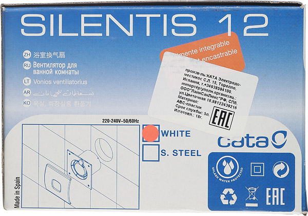Бытовой вытяжной вентилятор серии Silentis. Пониженный уровень шума, аэродинамическая (обтекаемая) форма для улучшенного потока воздуха. Предназначен для постоянной или периодической вытяжной вентиляции санузлов, ванных комнат, кухонь и других бытовых помещений. Имеет двигатель с защитой от перегрева. Устанавливается в вентиляционную шахту или в воздуховод соответствующего диаметра. Вентилятор используется только как для настенного монтажа. Подключение к сети осуществляется через отдельный выключатель или через штатный выключатель освещения в помещении.