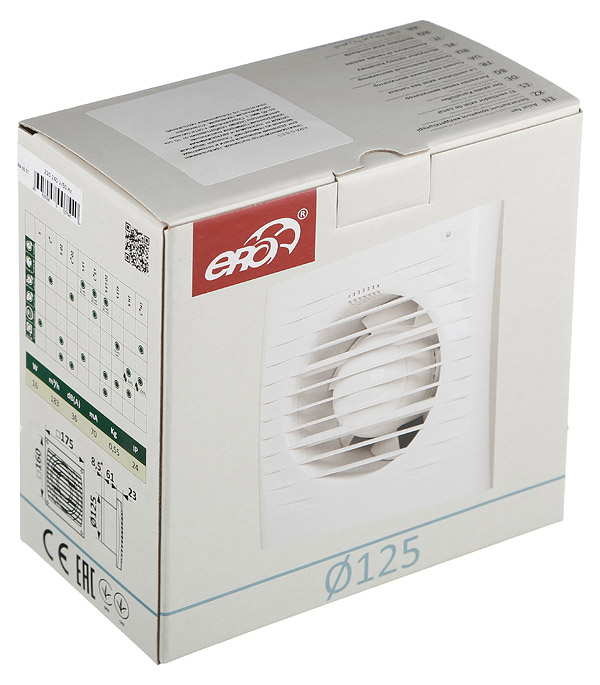 Вентилятор осевой ERA 5S ET с таймером 175х175 мм d125 мм белый