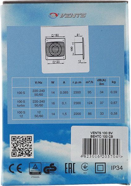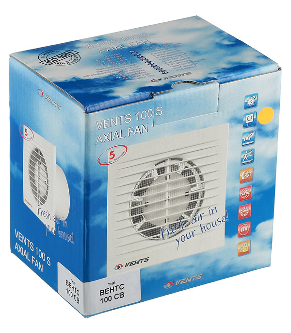 Вентилятор осевой Вентс 100СВ с тяговым выключатетлем 120х150 мм d100 мм белый