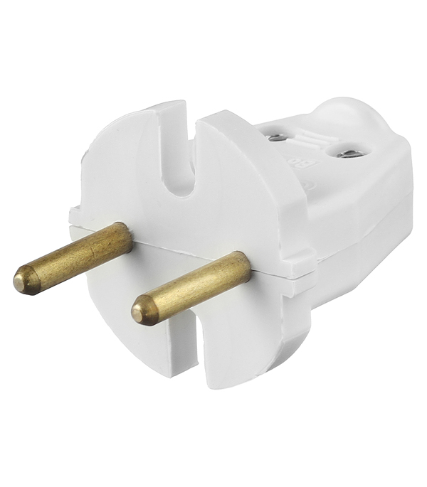 Вилка бытовая прямая без заземления 6 А 220 В IP20 белая