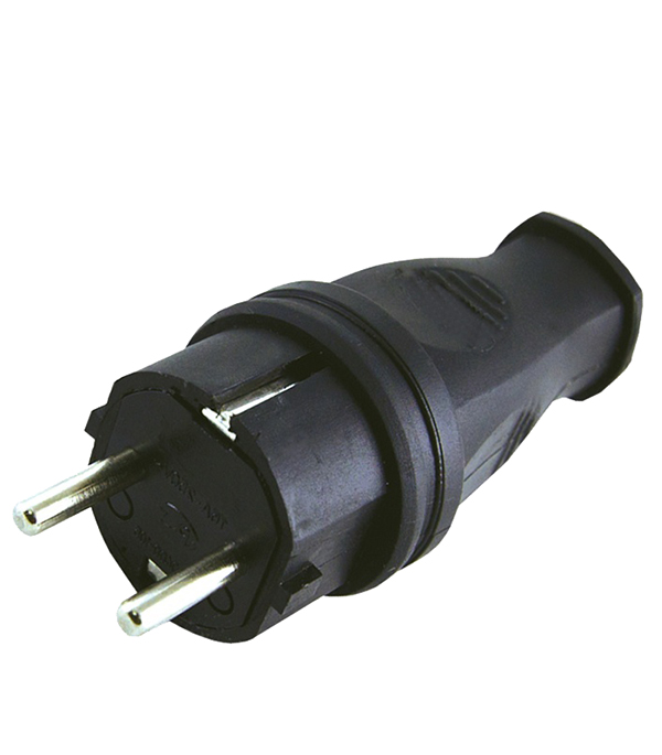 Вилка штепсельная каучуковая SVET прямая с заземлением 1 фаза 16 А 250 В IP44 черная