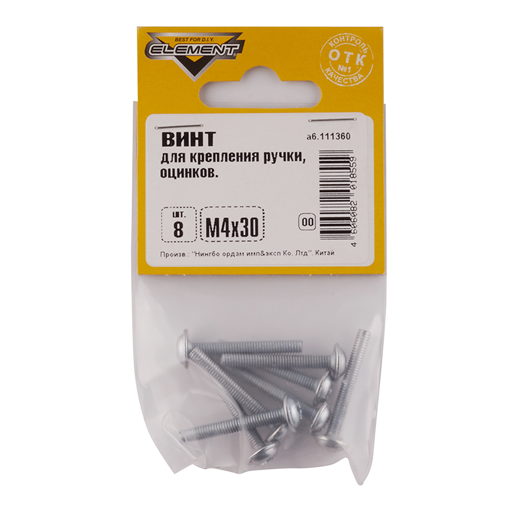 Винт для крепления ручки оцинкованный M4х30 мм полусферическая головка (8 шт.)