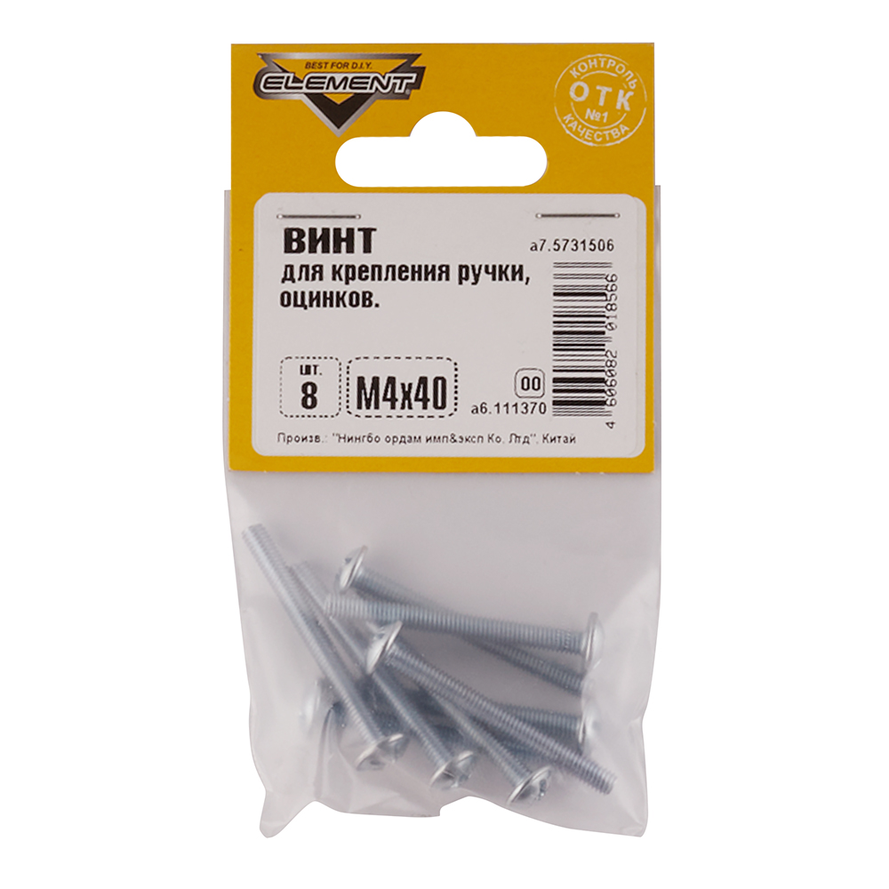 Винт для крепления ручки оцинкованный M4х40 мм полусферическая головка (8 шт.)