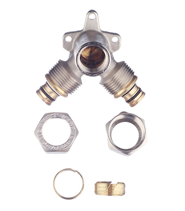 Предназначена для соединения спутем обжима металлопластиковой трубы диаметром 20 мм с различными приборами: смеситель, унитаз, стиральная, посудомоечная машина и др. Позволяет разветвить поток воды на два направления. Устанавливается на стене, имеет возможность крепления через существующие технологические проушины. Выходное соединение (в месте подсоединения к прибору) 1/2(16 мм) с внутренней резьбой.