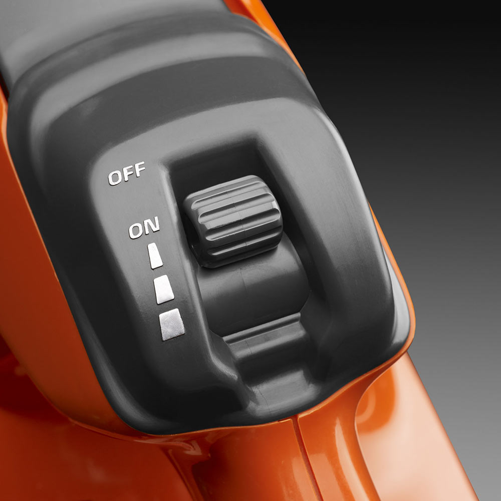 - Скорость вентилятора воздуходувки Husqvarna 320iB Mark II может быть установлена на желаемом уровне для облегчения управления