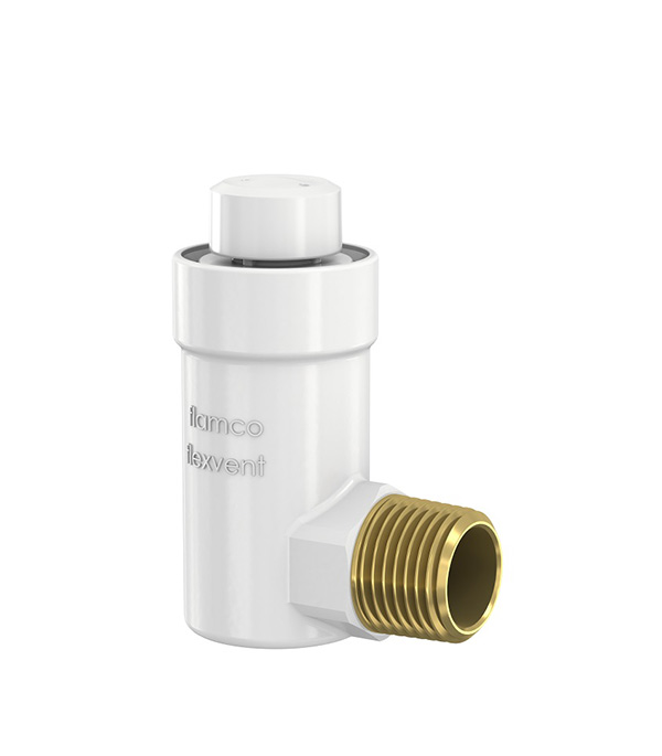 воздух, попадающий внутрь Flexvent, понижает уровень воды внутри клапана, опуская поплавок, который открывает клапан выпуска воздуха. При выпуске воздуха уровень воды внутри клапана повышается, поплавок всплывает и закрывает клапан. Увеличение расстояния от зеркала воды до клапана выпуска воздуха и кольца уплотнения из фибры дают дополнительную защиту воздухоотводчика от протечек. Воздухоотводчики наиболее эффективны при заполнении системы теплоносителем, т.к. именно в этот момент свободный воздух вытесняется жидкостью.