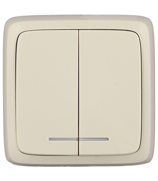 Выключатель HEGEL Alfa ВА10-154-01 двухклавишный открытая установка слоновая кость с подсветкой