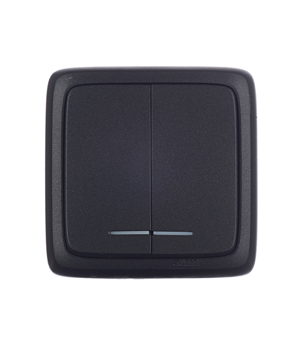 Предназначен для использования в квартирах и офисах, для включения и выключения двух независимых групп света либо любой другой нагрузки.rnУльтратонкий дизайн, высота рамки переключателя всего 17 мм, что сопоставимо с высотой выключателя для скрытой установки. Индикация исключает мерцание выключенных ЭСЛ и светодиодных ламп.