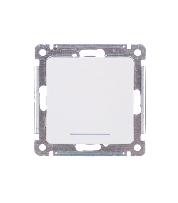 Предназначен для размыкания и замыкания цепи питания. Клавиша после срабатывания возвращается автоматически в исходное положение. Индикация исключает мерцание выключенных ЭСЛ и светодиодных ламп. Устанавливается вместе с рамкой