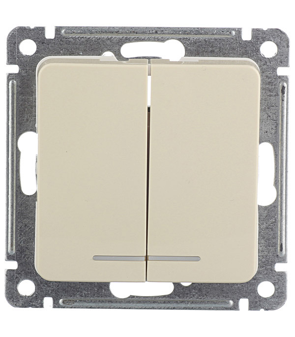 Выключатель HEGEL Master ВС10-452-01 двухклавишный скрытая установка слоновая кость с подсветкой