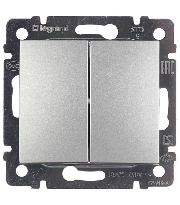 Выключатель Legrand Valena 694337 двухклавишный скрытая установка алюминий
