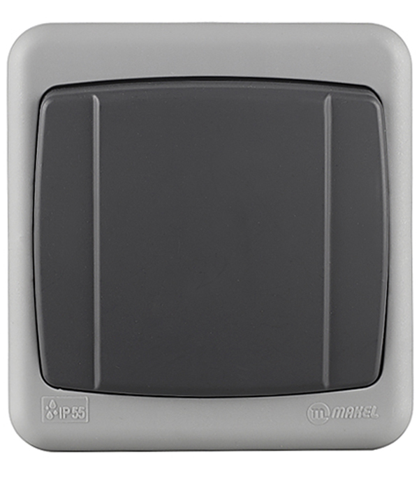 Выключатель Makel 36064101 одноклавишный открытая установка серый IP55 с быстрозажимными контактами