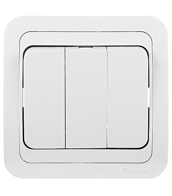 Выключатель с рамкой Makel Mimoza 12091 трехклавишный скрытая установка белый