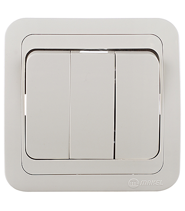Выключатель с рамкой Makel Mimoza 25091 трехклавишный скрытая установка бежевый