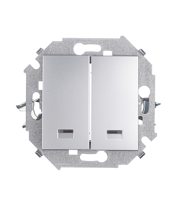 Выключатель Simon 15 1591392-033 двухклавишный скрытая установка алюминий с подсветкой
