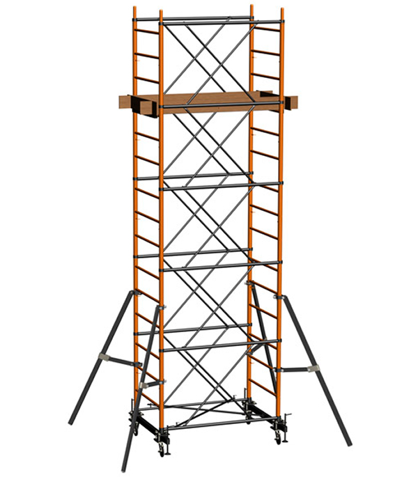 Предназначена для выполнения строительно-монтажных, ремонтно-отделочных работ внутри и снаружи помещений. rnПередвижная вышка-тура – это вертикальная конструкция башенного типа на колесах, состоящая из базового блока и десяти промежуточных секций, с рабочей площадкой размером 2,0 х 0,8 м.rnОна собирается из металлических плоских рам и диагональных связей, которые входят в состав секций и нижнего основания.rnИзготовлены рамы и связи из стальных тонкостенных труб разного диаметра, окрашенных порошковой эмалью.rnОборудована двумя балками с мощными винтовыми опорами для работы на неровных поверхностях, четыре большегрузных поворотных обрезиненных колеса.rnДополнительная устойчивость обеспечивается за счет четырех стабилизаторов. rnРабочая высота – это параметр, рассчитываемый путем сложения высоты верхней секции лестницы/стремянки/выши-туры и роста человека с вытянутой вверх рукой (в среднем, два метра).
