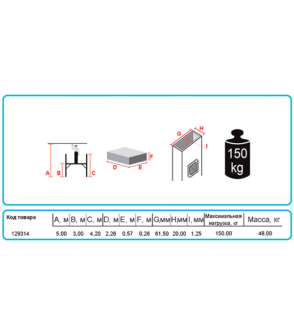 Рабочая высота – это параметр, рассчитываемый путем сложения высоты верхней секции лестницы/стремянки/вышки-туры и роста человека с вытянутой вверх рукой (в среднем, два метра).