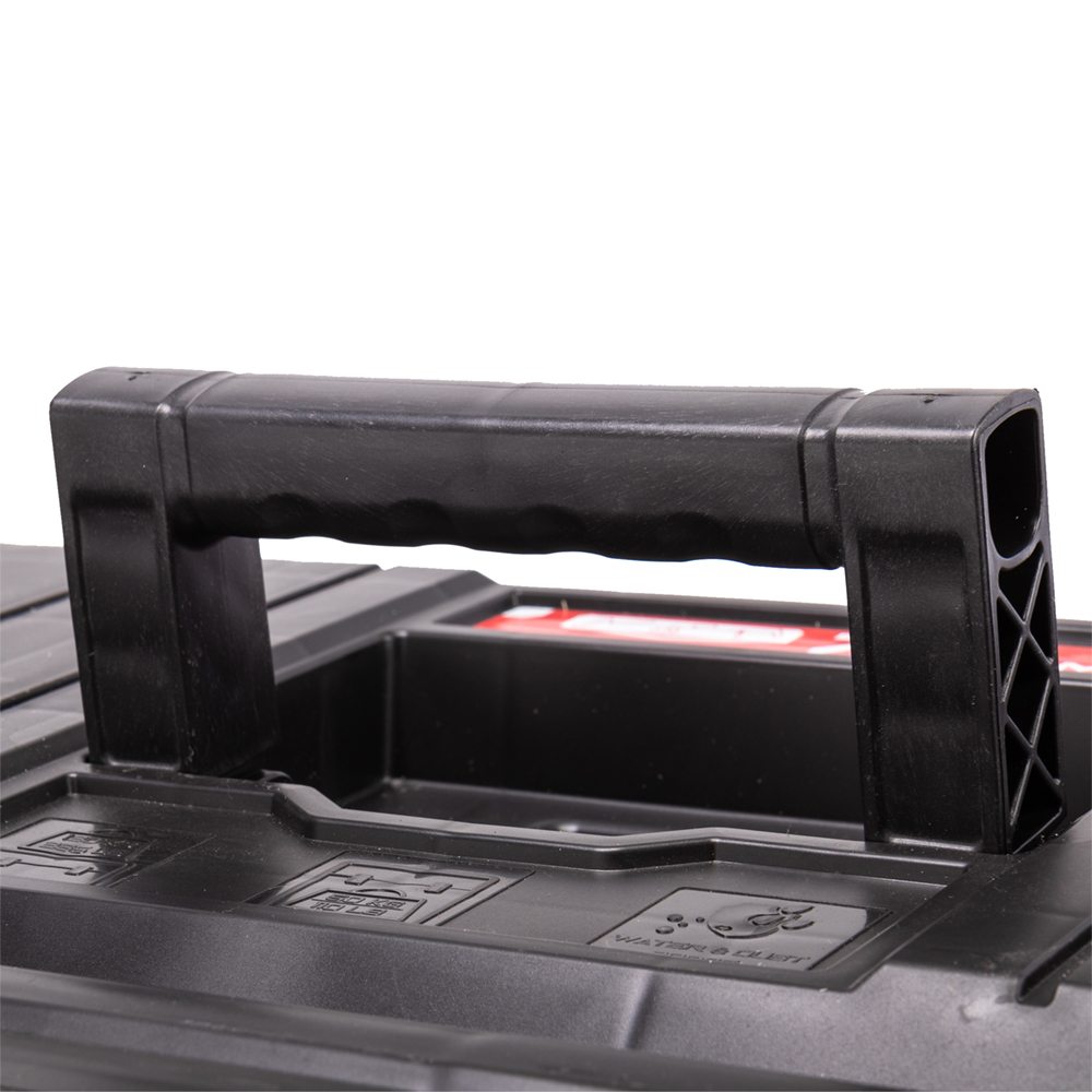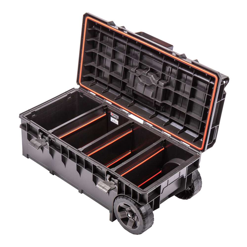 Предназначен для хранения и транспортировки инструмента.rnУдлиненный ящик на колесах, позволяющий транспортировать особо габаритный инструмент. Усиленная конструкция ящика, оснащенная ребрами жесткости,выдерживает нагрузку 120 кг. Герметичная конструкция и уплотнительная резинкаобеспечивают полную водо – и пыле – непроницаемость. Замки, ручки изготовлены из полиамида, что обеспечивает их исключительную прочность и устойчивость к механическим повреждениям и ржавчине. В крышке желоб для распиловки с линейкой.