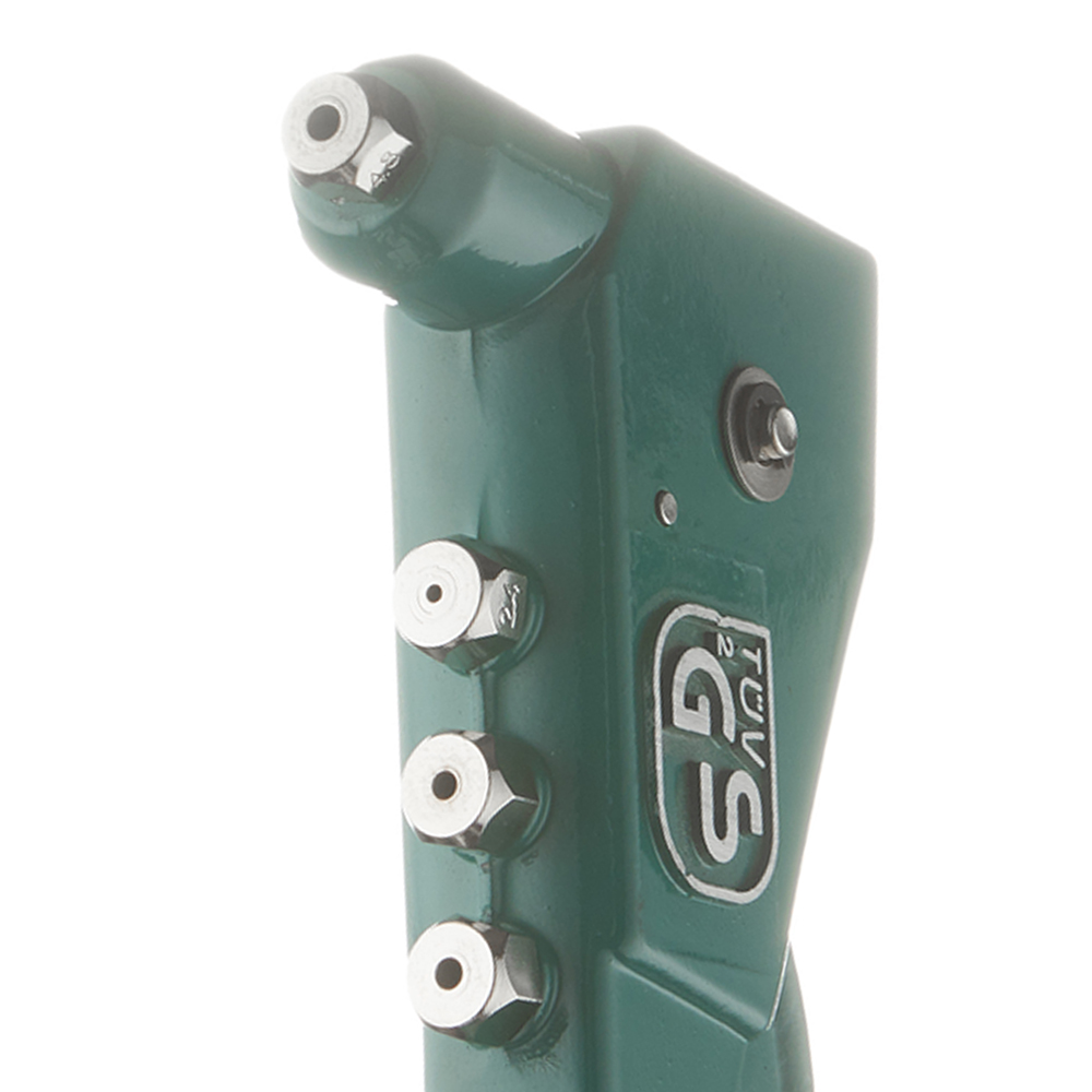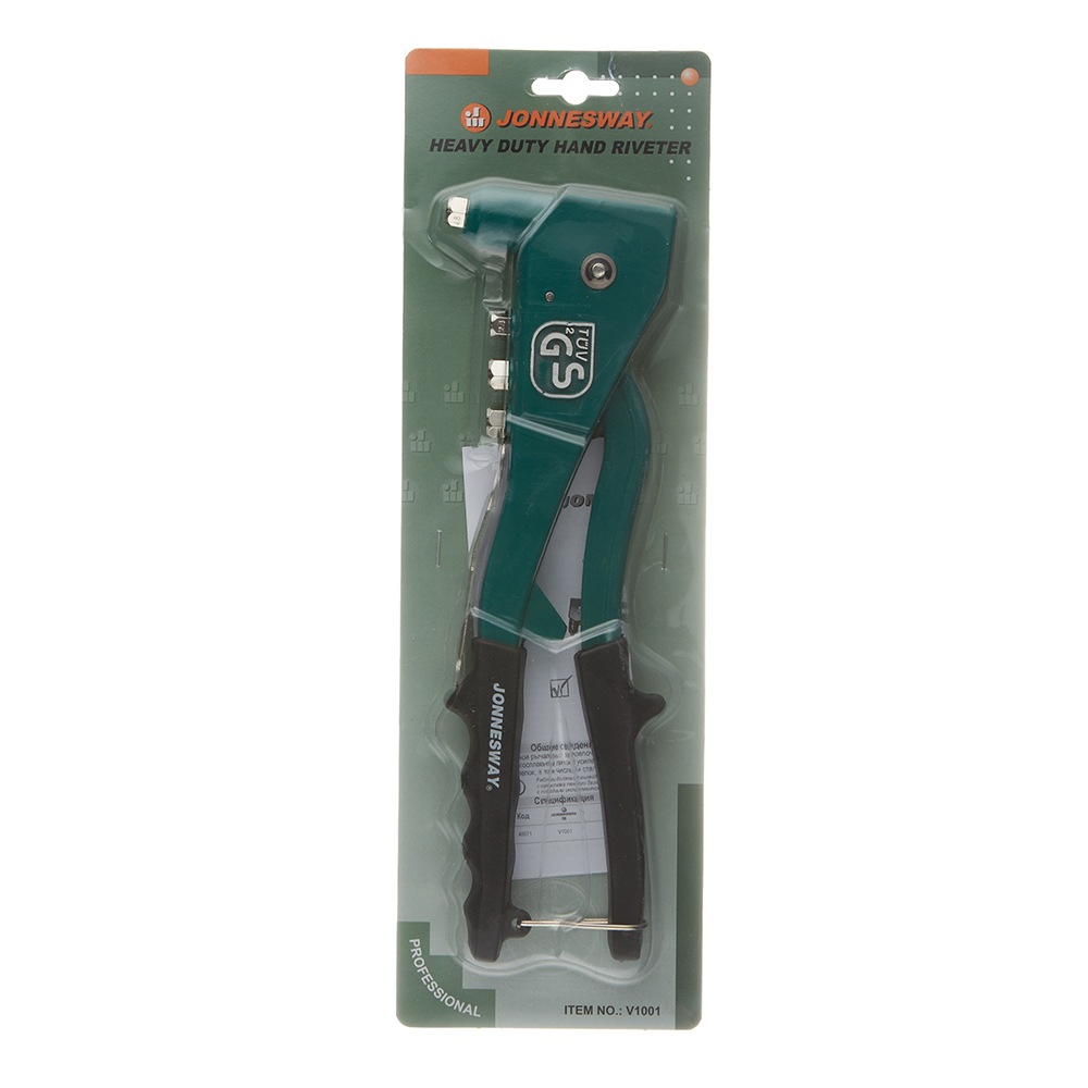 Ручной рычажный заклепочник JONNESWAY со стальным штампованным корпусом и легкосплавной литой усиленной рукояткой.rnПрименяется для обслуживания вытяжных заклепок, в том числе, и стальных, размером 2,4-4,8 мм. Применяется для соединений, в конструкции которых используются слепыезаклепки. rnВнимание! Работы должны производиться персоналом, имеющим соответствующую квалификацию, знакомым с правилами техники безопасности, условиями эксплуатации, а также владеющим навыками работы с подобным инструментом!