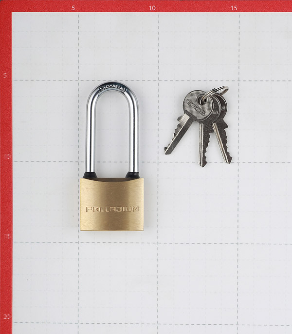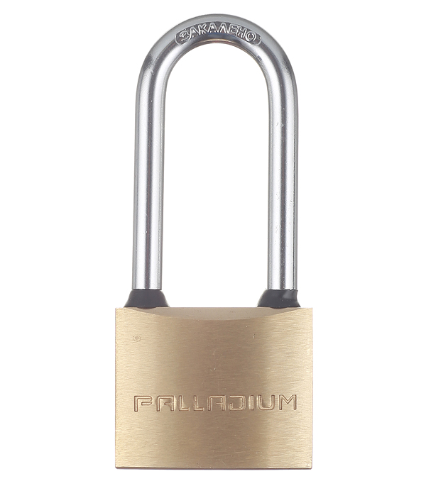 Замок навесной Palladium серии 301B L (высокая дужка). Корпус замка выполнен из латуни, закаленная стальная дужка, автоматическое запирание.